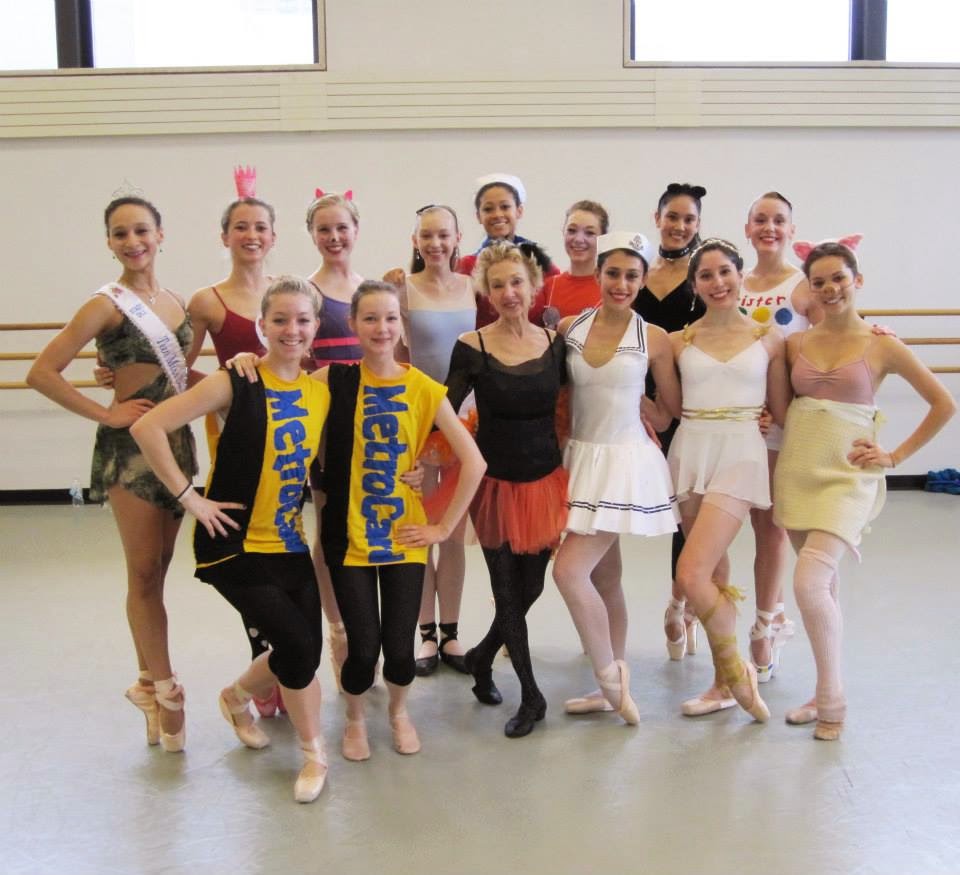 D Women's Class with Suki Schorer front and center, plus two Metrocards, a Sailor, a Greek Goddess and a Pig-in-a-Blanket in the front row. Photo from SAB Facebook page |